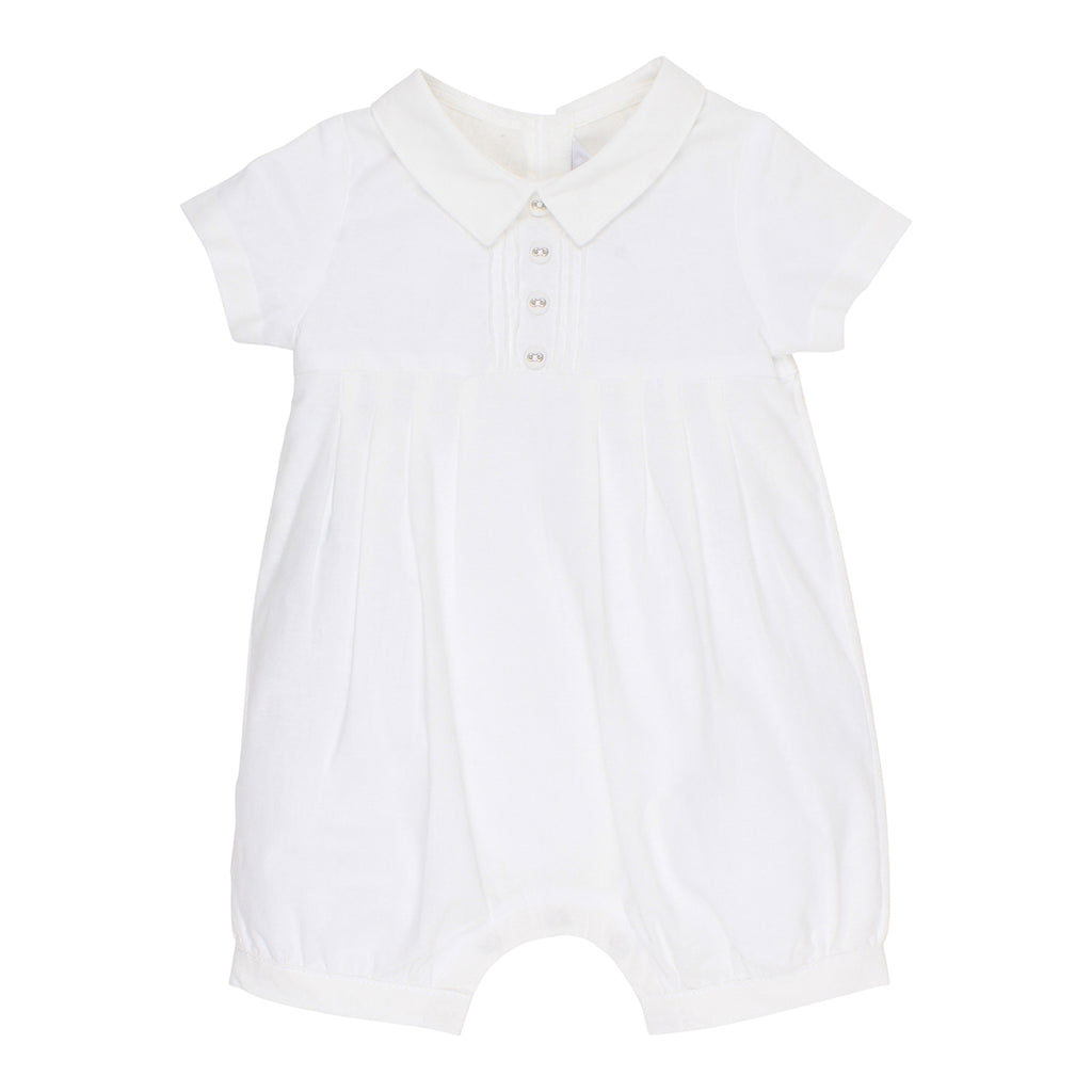 Bebe Boys Pleat Romper in Ivory (Size NB-0)