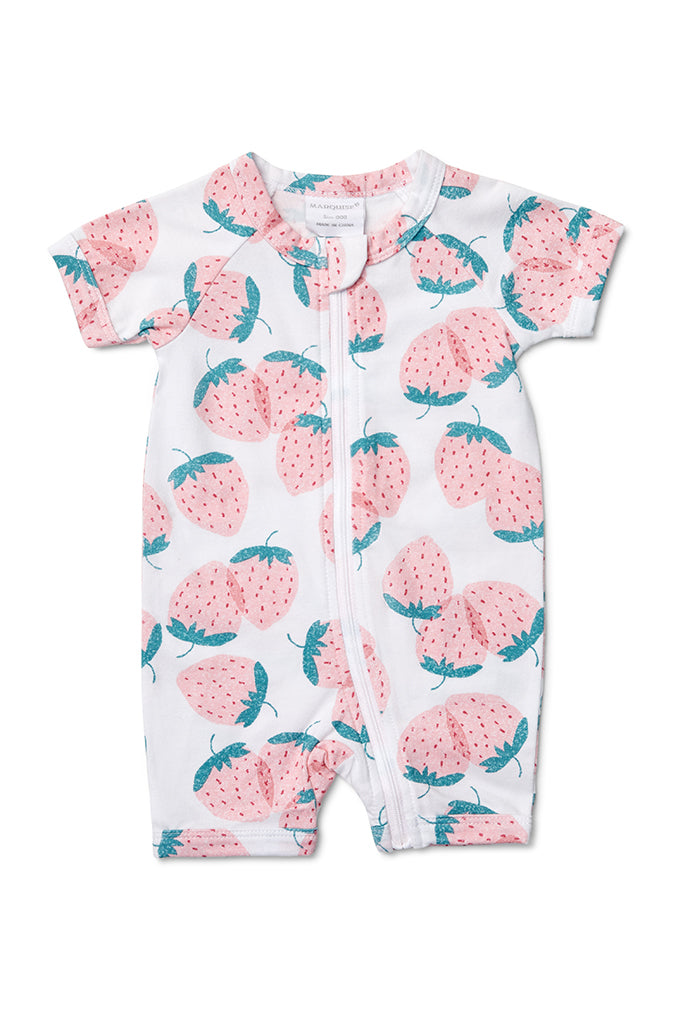 • Marquise Girls S/S Zip Romper Strawberries (Size NB-1)