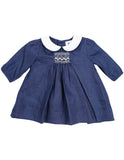 Korango Classique Girl Lined Hand Smocked Dress with Collar - Navy