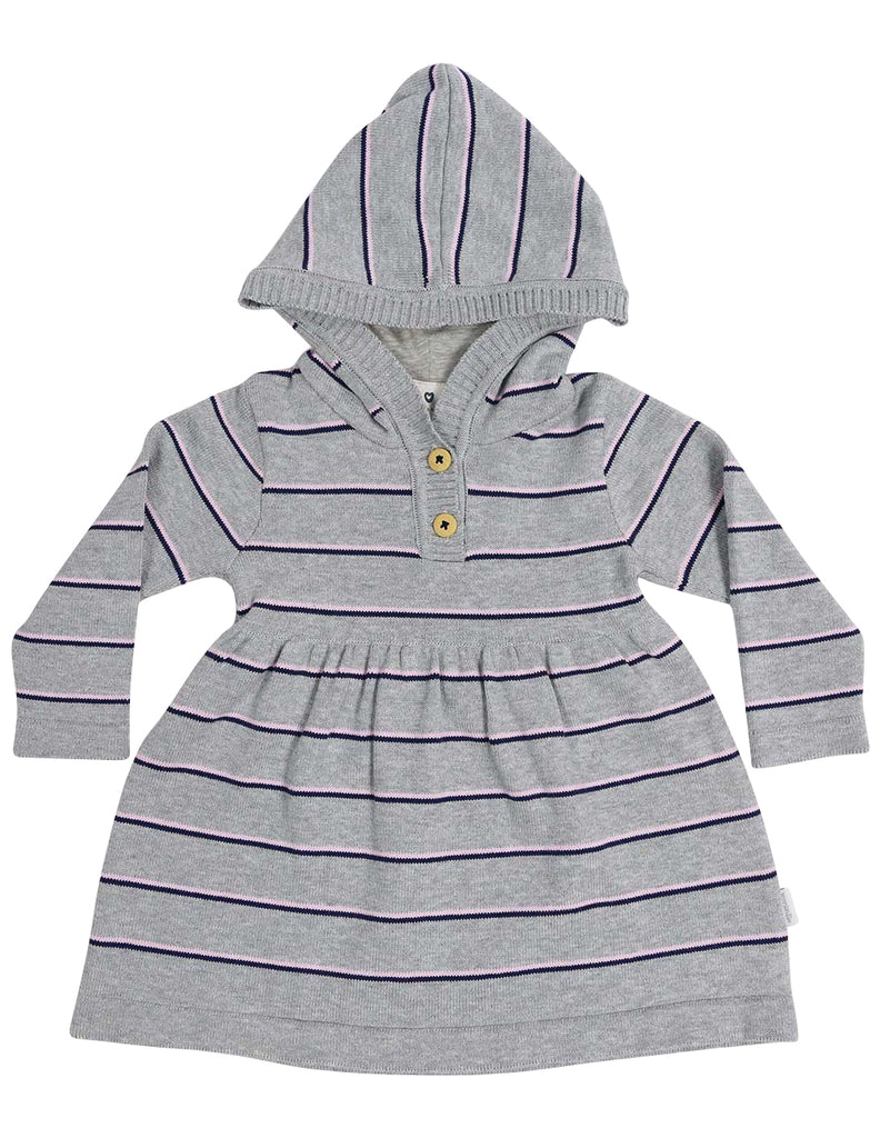 • Korango Stars Stripe Hooded Knit Dress - Grey Marle