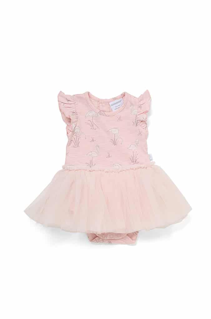 Sweet tutu with flamingo print on top. Girls will love twirling with the tutu skirt. Perfect for special days out.