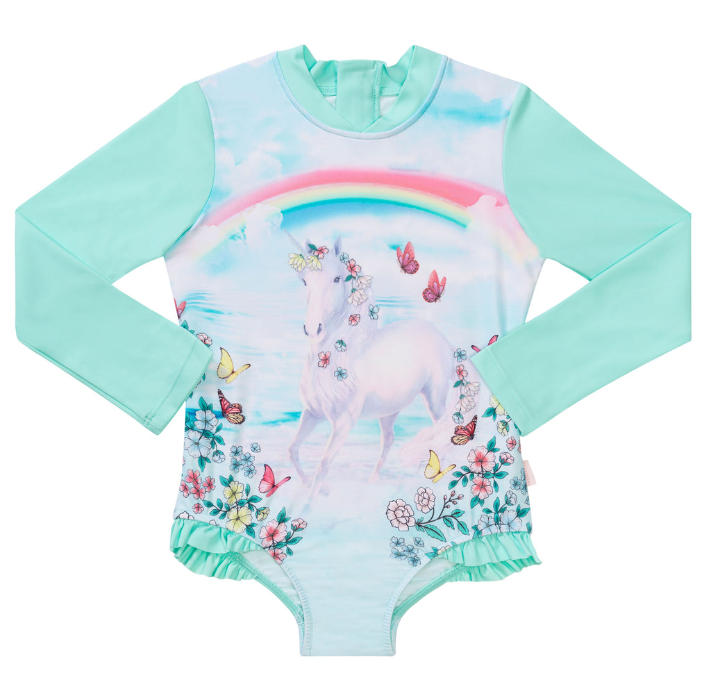 Seafolly Mystical Garden Unicorn L/S Surf Tank - Emerald Blue (Size 0-7)