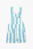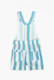 Linen onesie for girls. Sizes from 5 to 14 years. With green and white stripes. Fastened with buttons. Decorated with a label with brand detail.