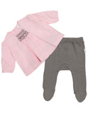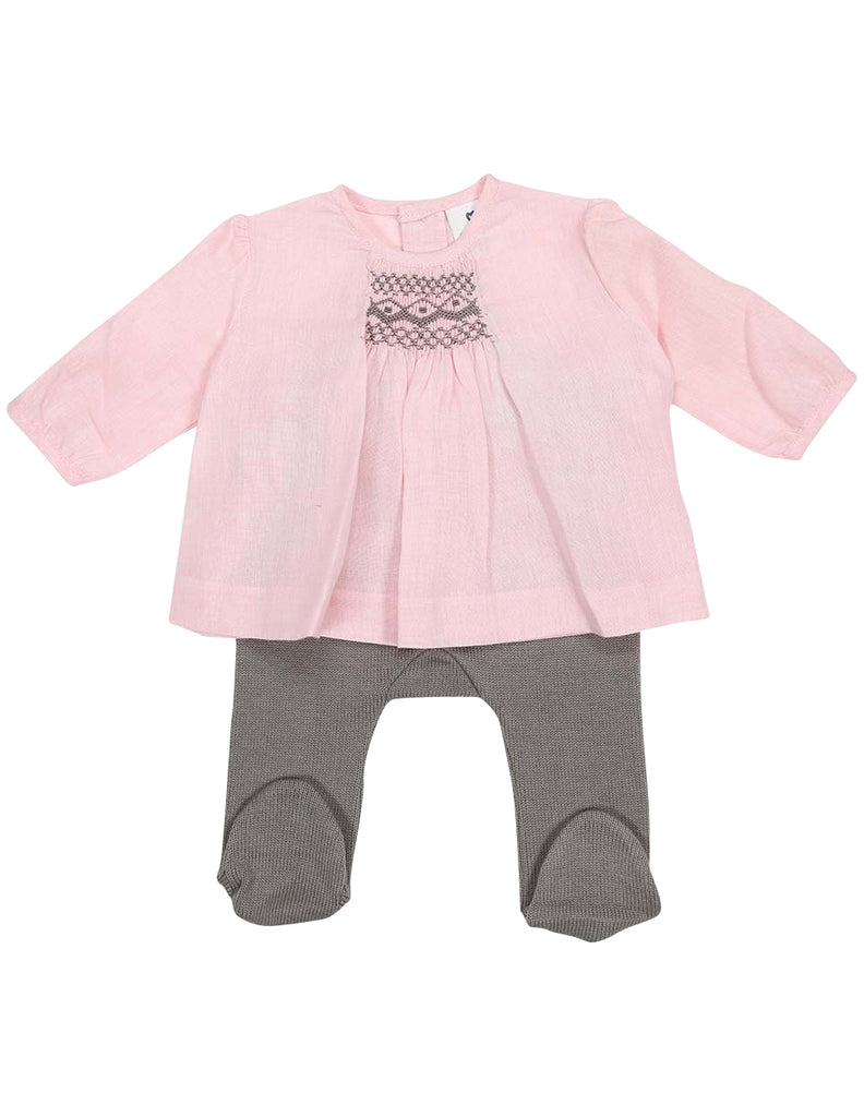 Korango Classique Girl Lined Hand Smocked Blouse with Knit Leggings - Pink/Grey