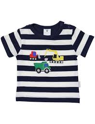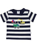 Cotton navy and white striped top with excavator applique