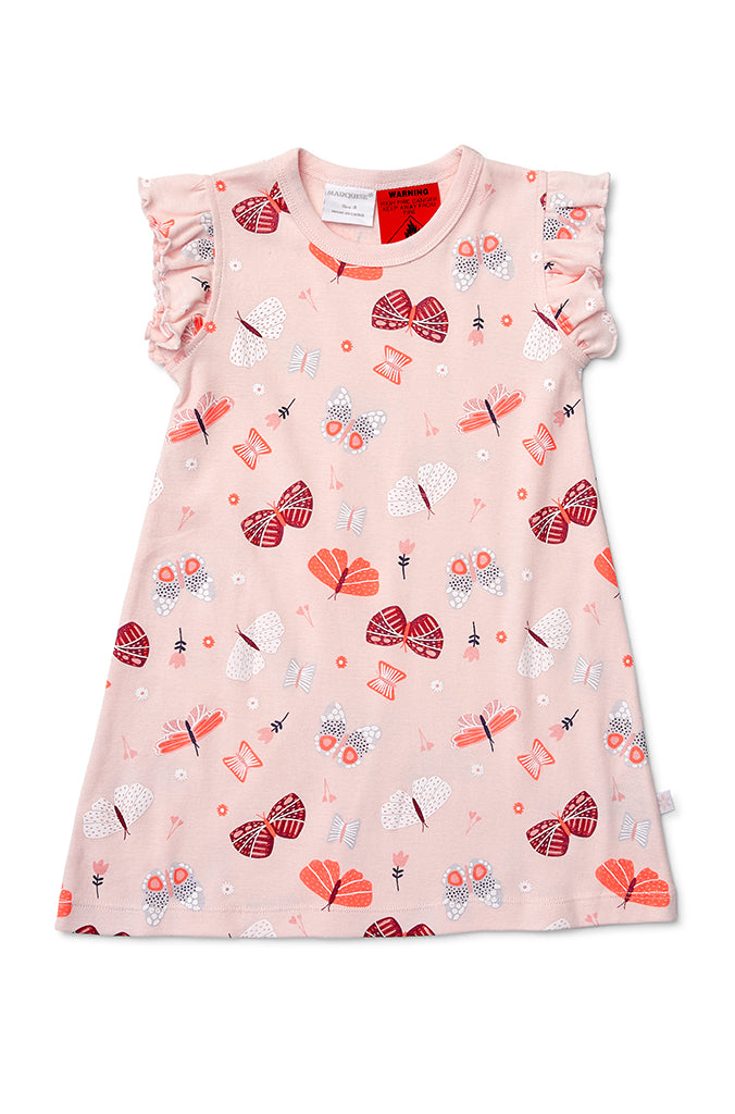 Short sleeve pink nightie with all over butterflies pattern. This girls summer nightie is comfy for warmer nights.
