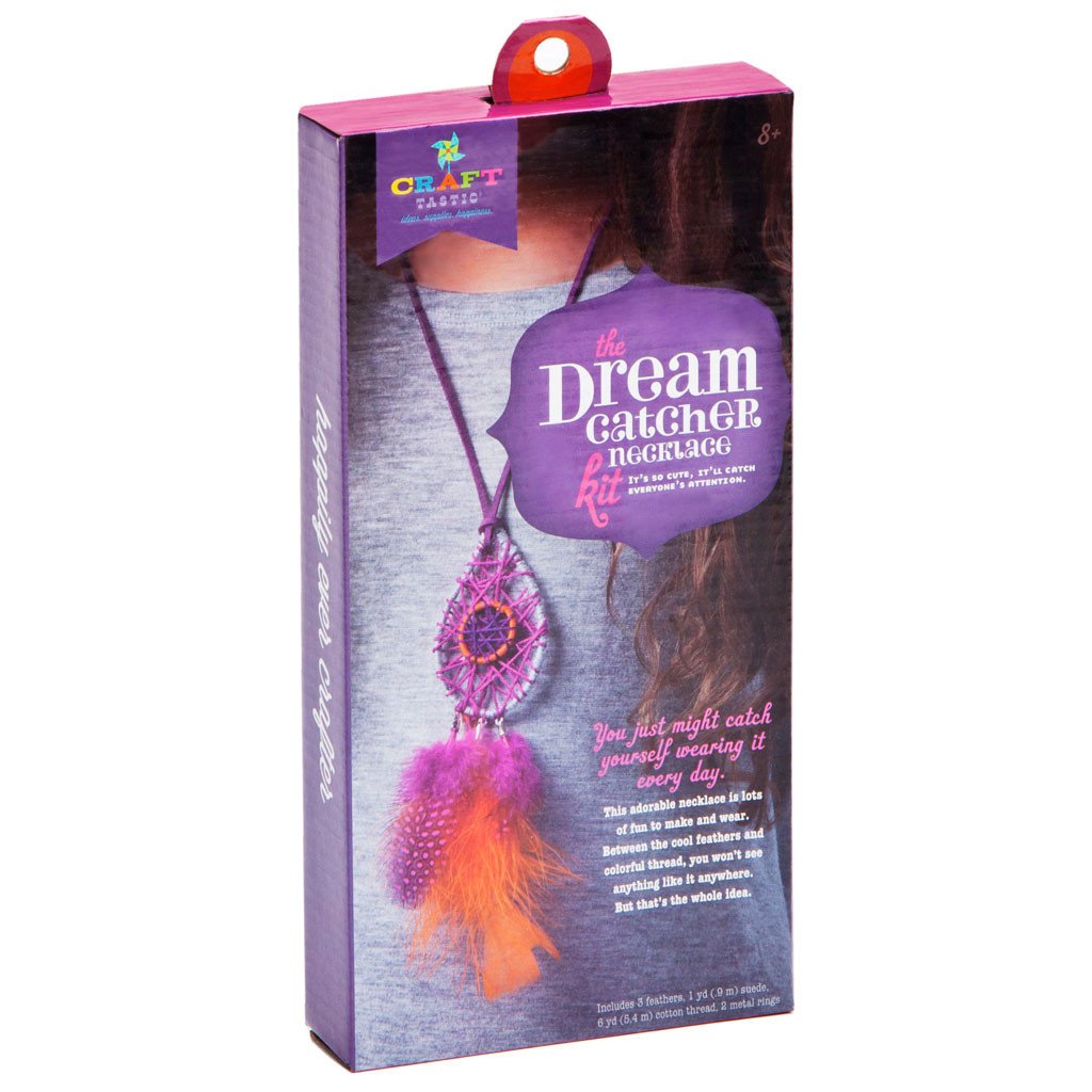 Every girl dreams of making a beautiful necklace and now she can. Inside the box, she'll find precut suede for the necklace, a teardrop-shaped ring and a circular ring, two colors of feathers, three different colors of embroidery thread, and easy-to-follow instructions.