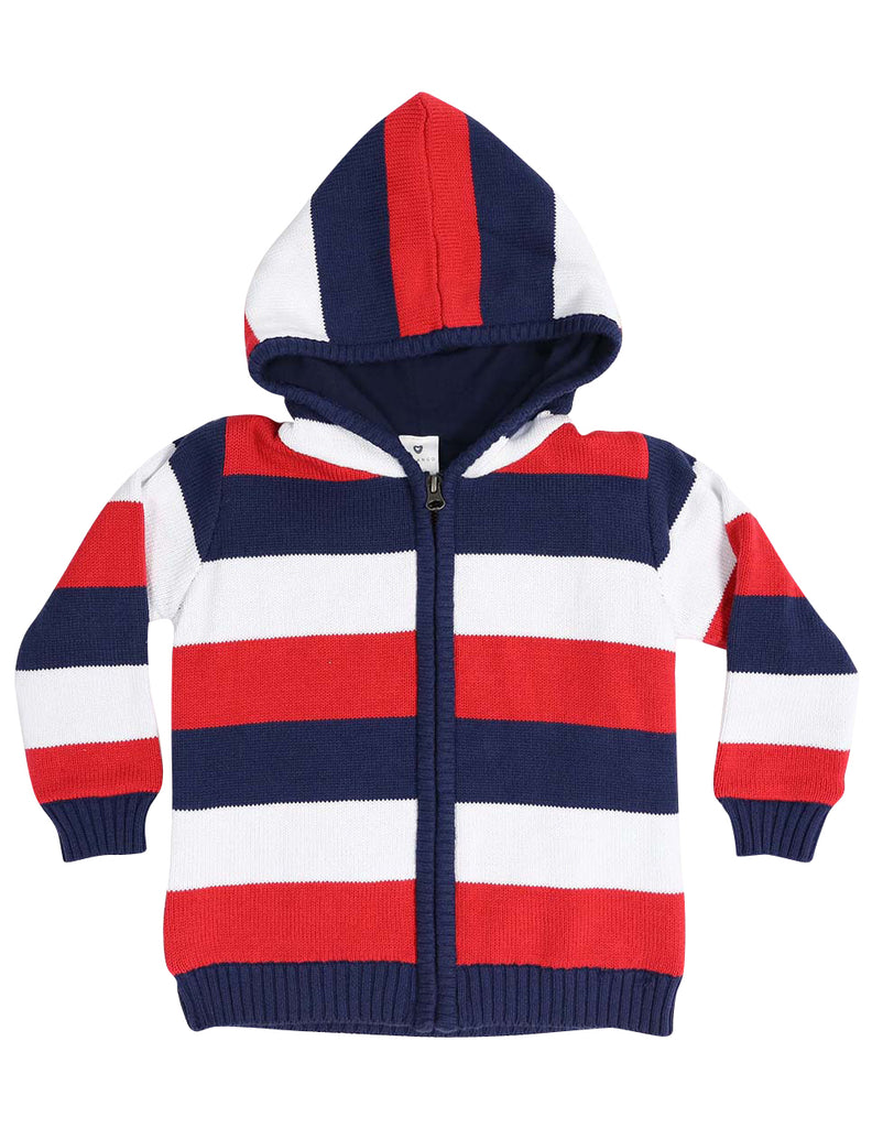 Korango Dragon Lined Chunky Knit Jacket - Red/Navy/White