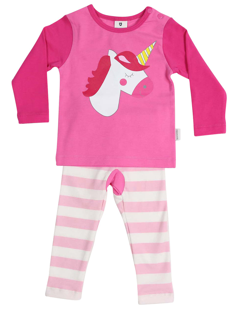Korango Sleepwear Cotton Pyjamas Long Sleeve Tee and Pant Unicorn - Pink/White