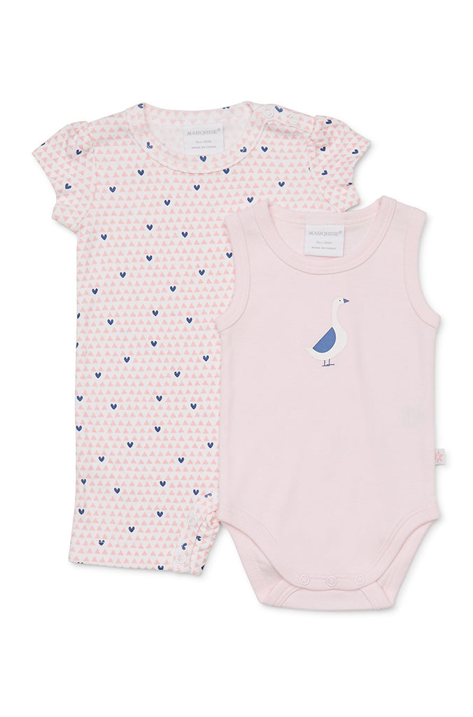 Girls heart printed envelope neck romper with sleeveless bodysuit with placement print