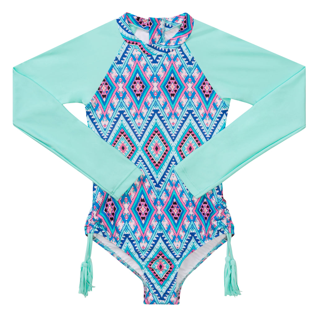 • Seafolly Aztec Folk L/S Surf Tank - Emerald Blue (Size 8-14)